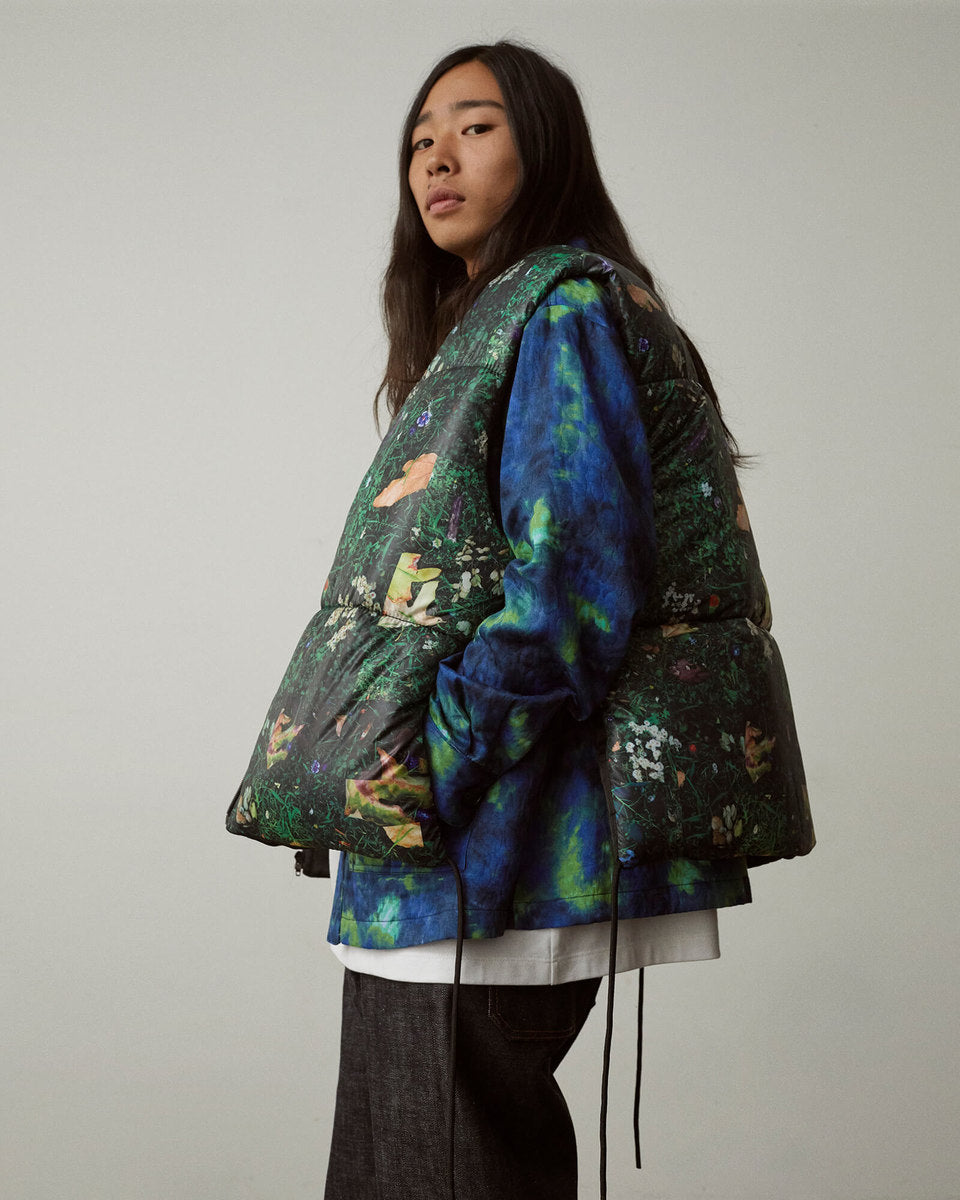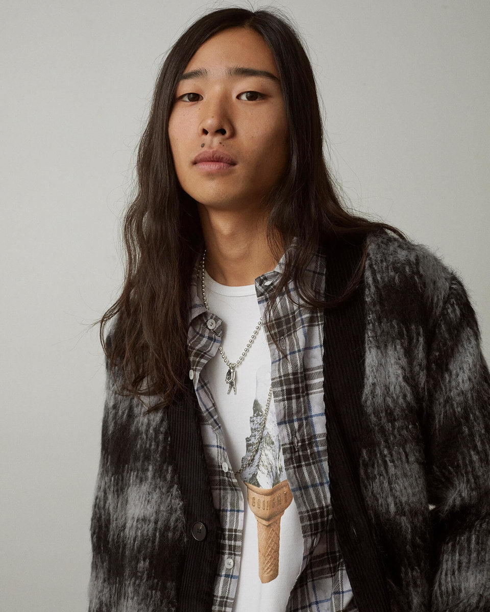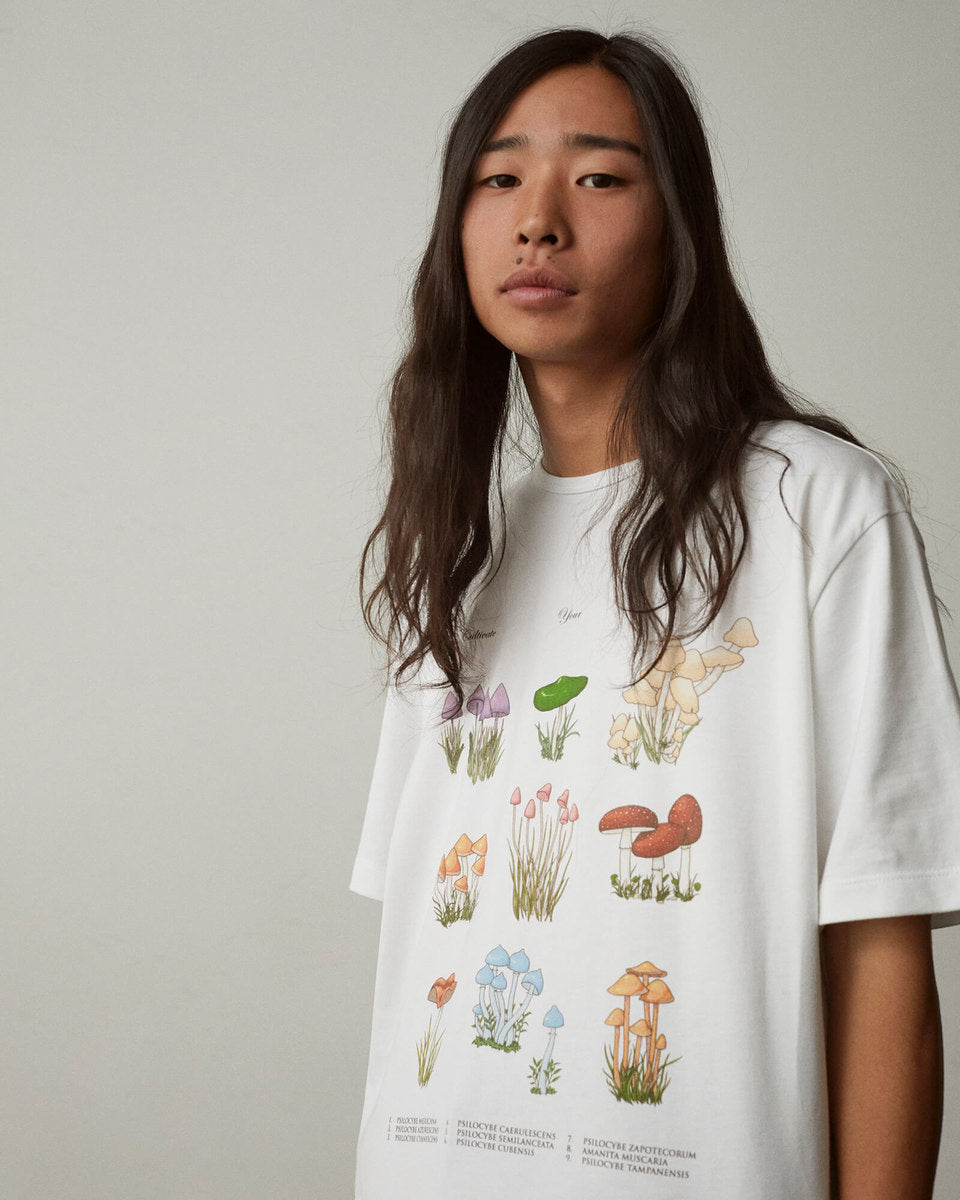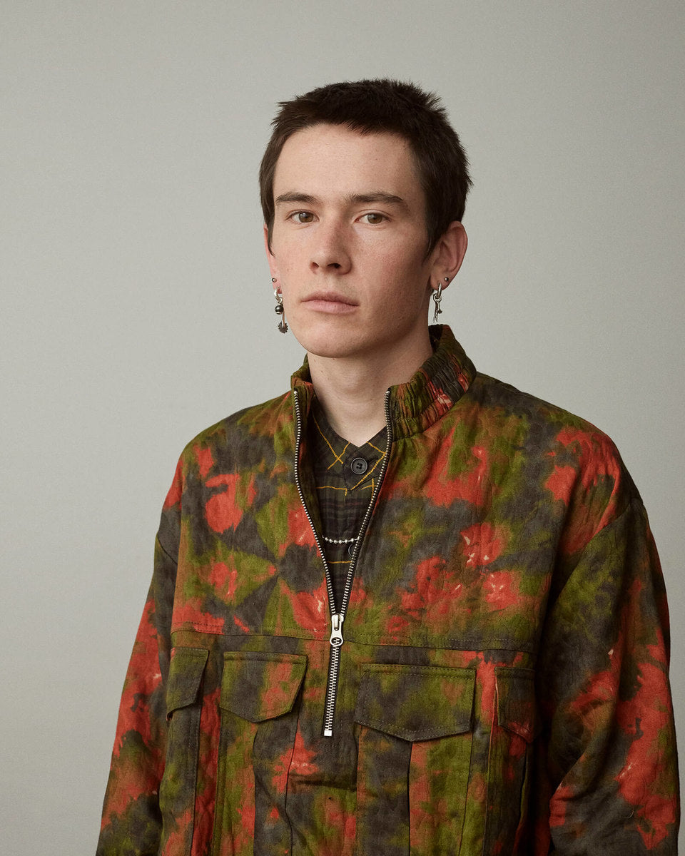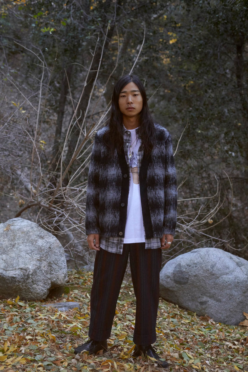 The FW20 collection “Harvest Train To Christmas Mountain, I Know We’ll Be There Soon” follows a 9-to-5 office employee trapped in the hamster wheel of his corporate life. Desperate for some kind of escape, he discovers psilocybin fungi and plans a new life in the outdoors. It’s immediately apparent that the skills he’s used to succeed in his occupation mean nothing in the wild—he’ll need to develop his own kind of bushcraft skills if he’s going to survive.