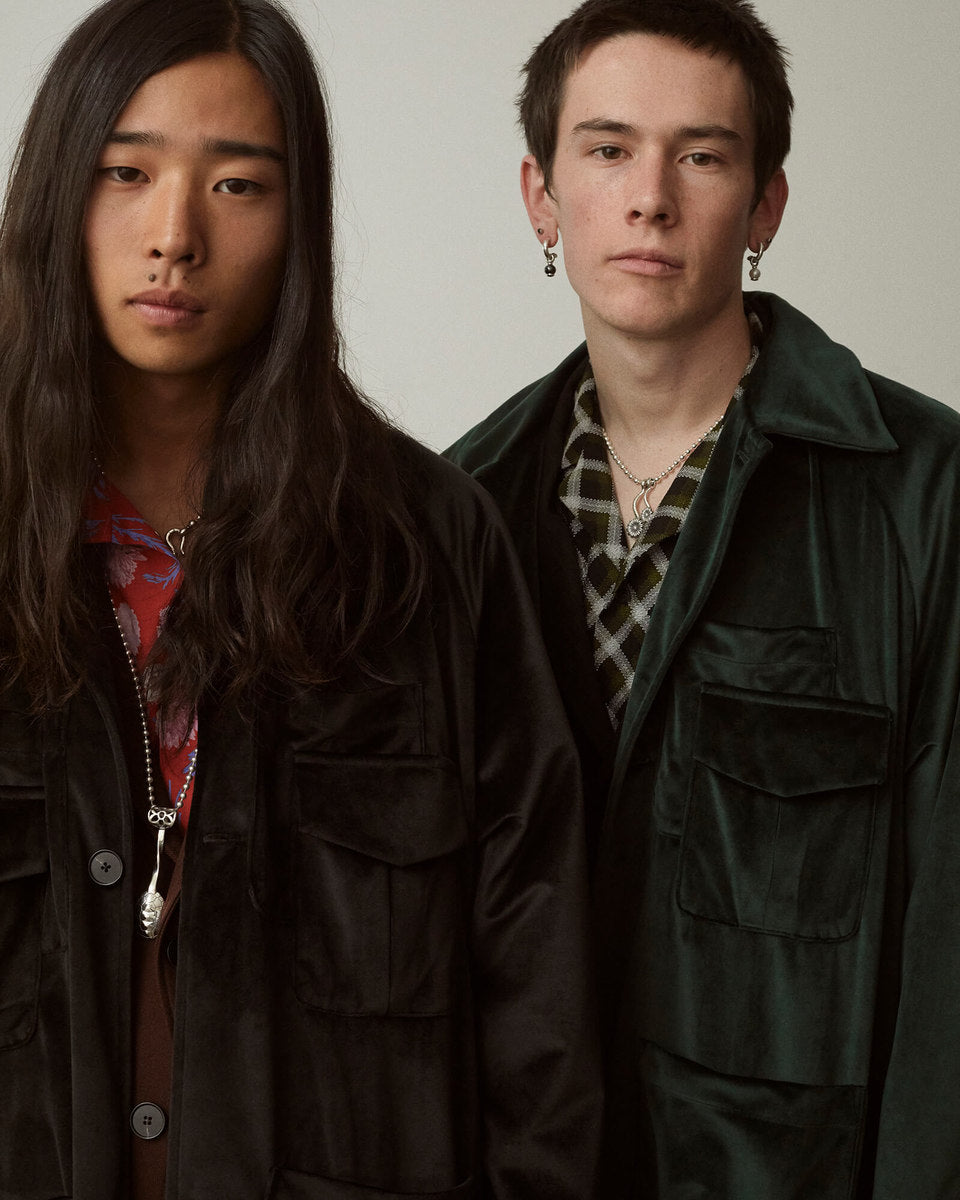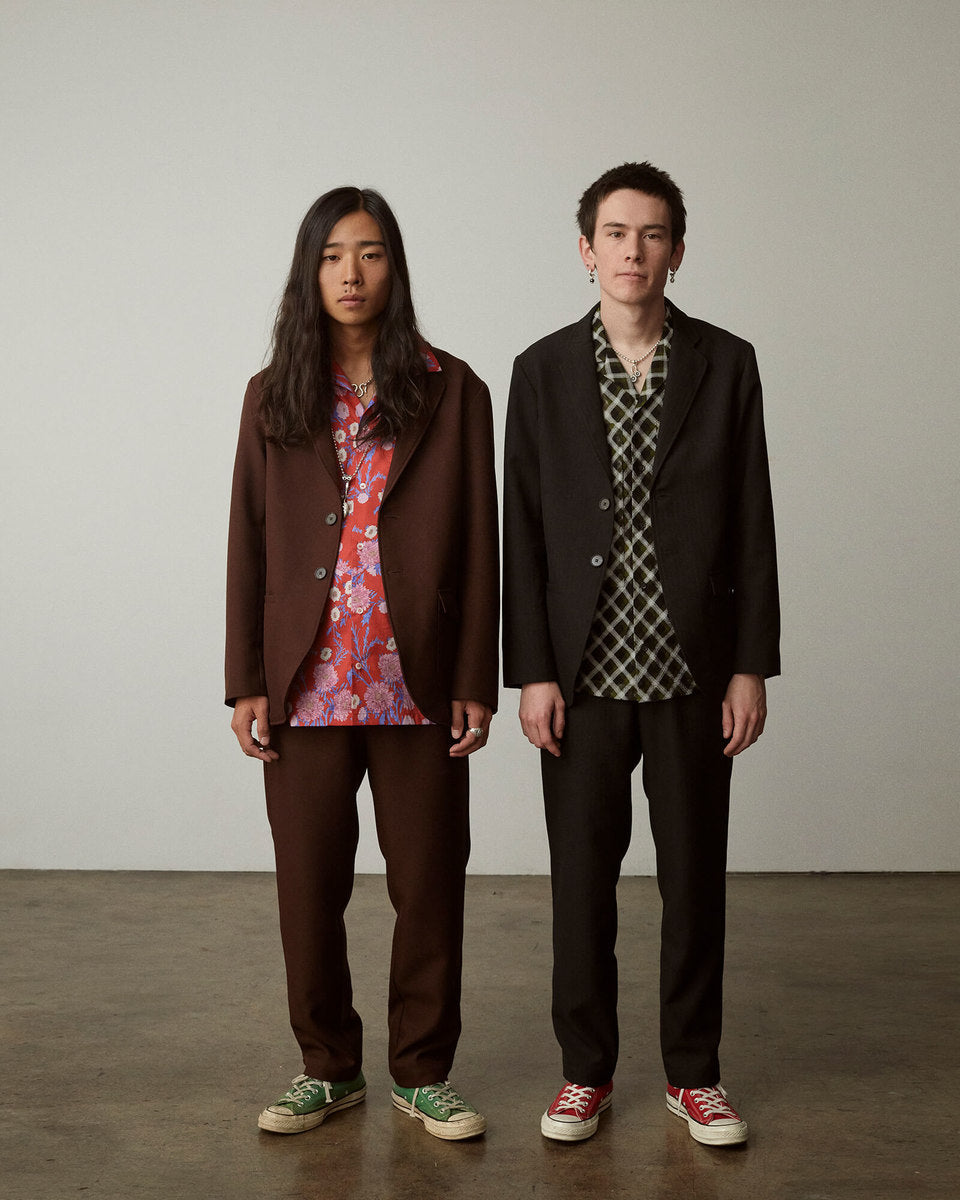 with romance, to subtly challenge notions of traditional menswear with “non- masculine” aspects, and to find beauty in the strange and unexpected.These small bits of disorder are where we find freedom to explore as a brand.