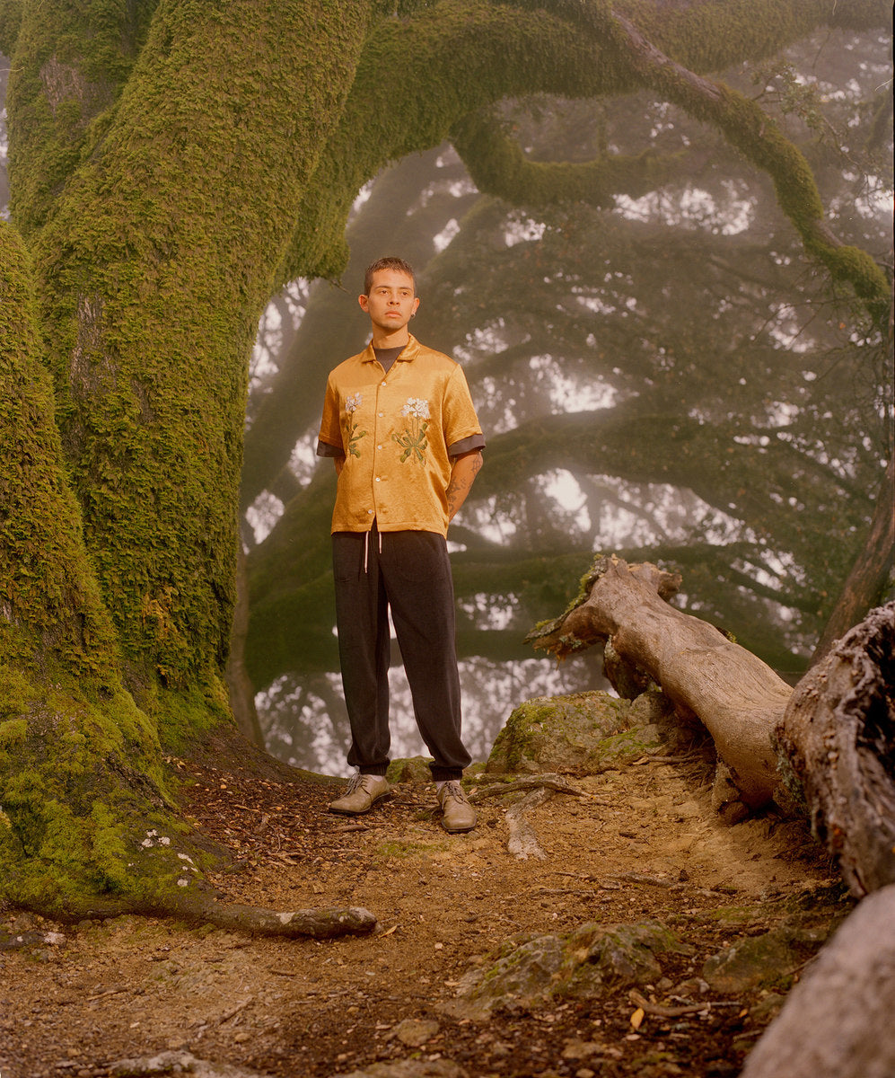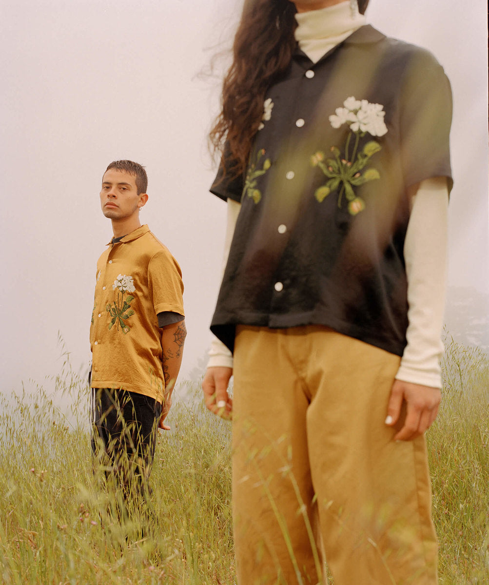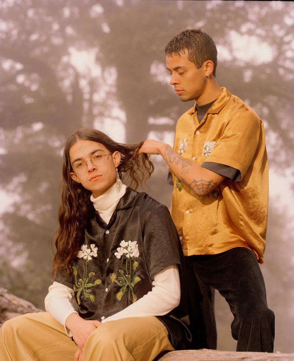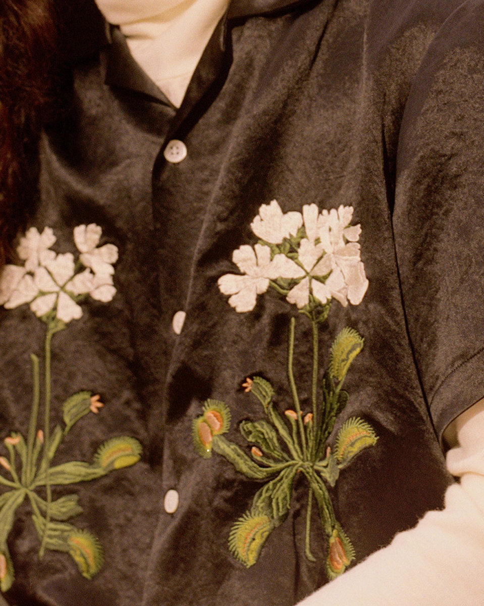 The fall winter 2018 collection was inspired by the idea of secret societies and the aesthetics and sounds that come from that world. Details include music references like enlarged polo-shirt buttons fashioned like vinyl records, speakeasy-style pinstripes, and hidden detailing like embedded waistband lace loops or invisible zippers. A few of the styles feature constructions that encourage the individual to wear pieces variably.