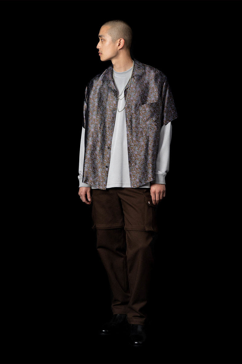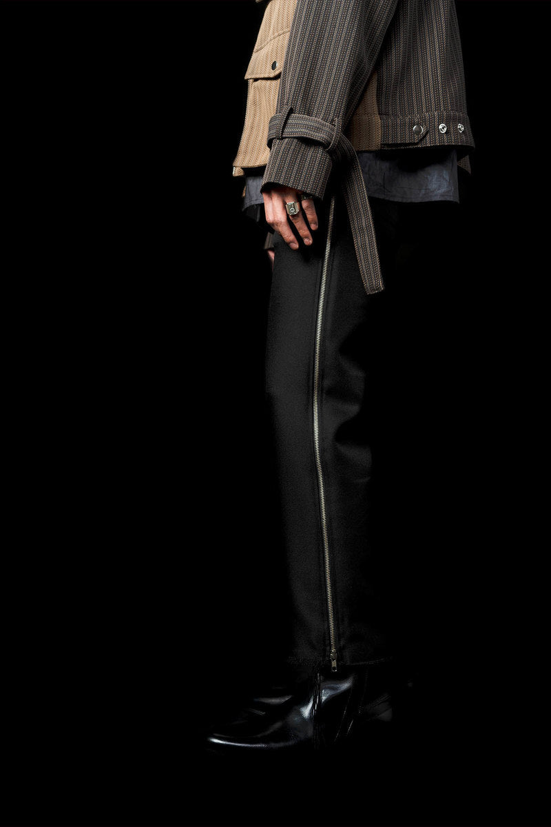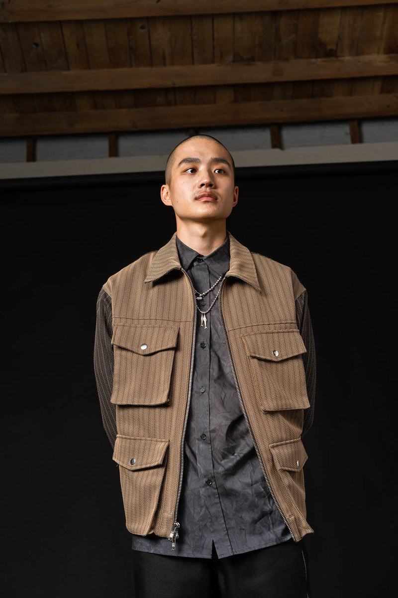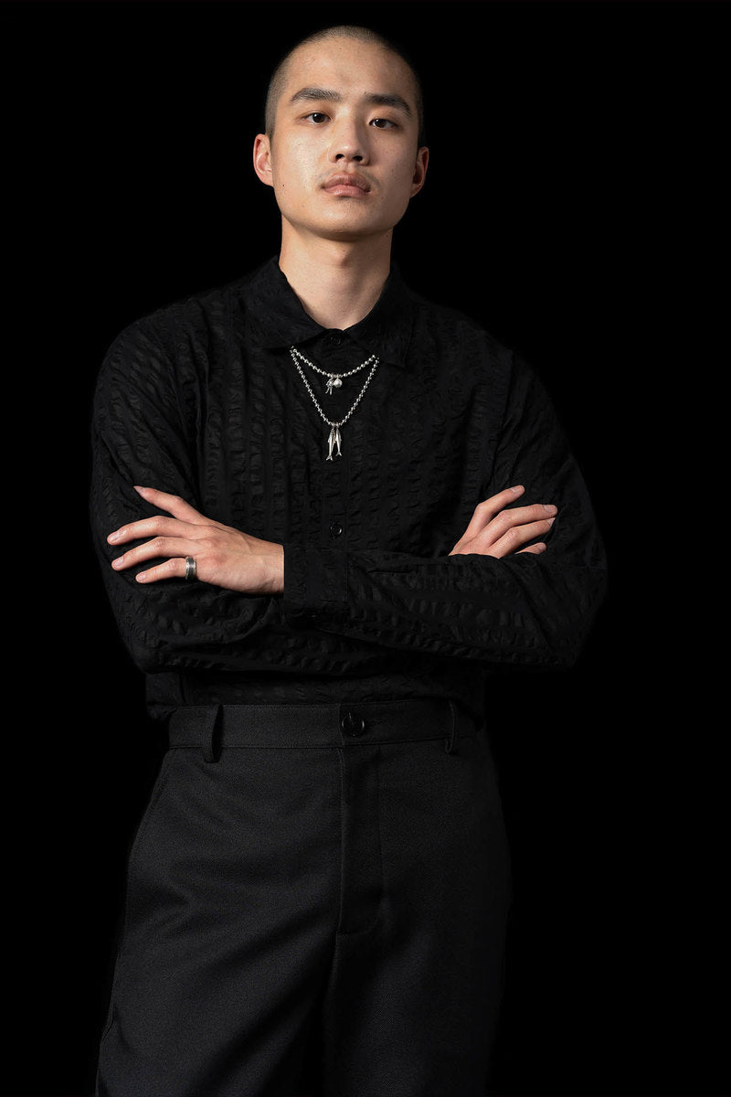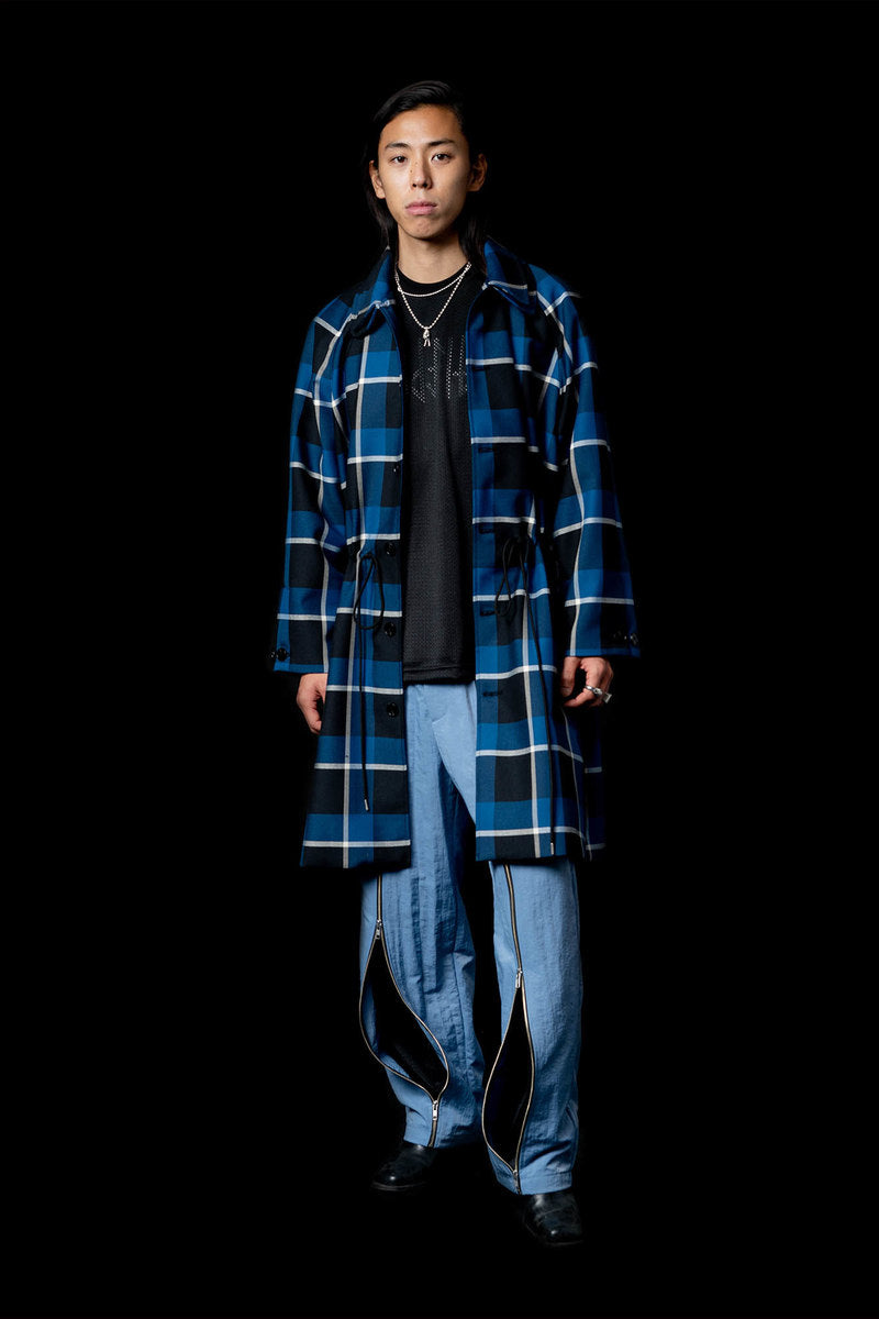 The Fall Winter 2021 collection explores the complicated nature of graffiti as a form of communication, as an existential marker, and as an agent of dissent. Some garments are crafted with functionality as the driving motivation, while others grapple with art itself. Pockets are fashioned externally or internally to stash cans, markers, or tools. Fabrics were often times sourced to deal with a single idea in two different ways—eg. a heavyweight poly-satin was chosen for its natural crinkle texture while a crinkle print fabric was used on shirting in a visually similar but physically different way. Details like these allow for tonal configurations of not only color, but texture.