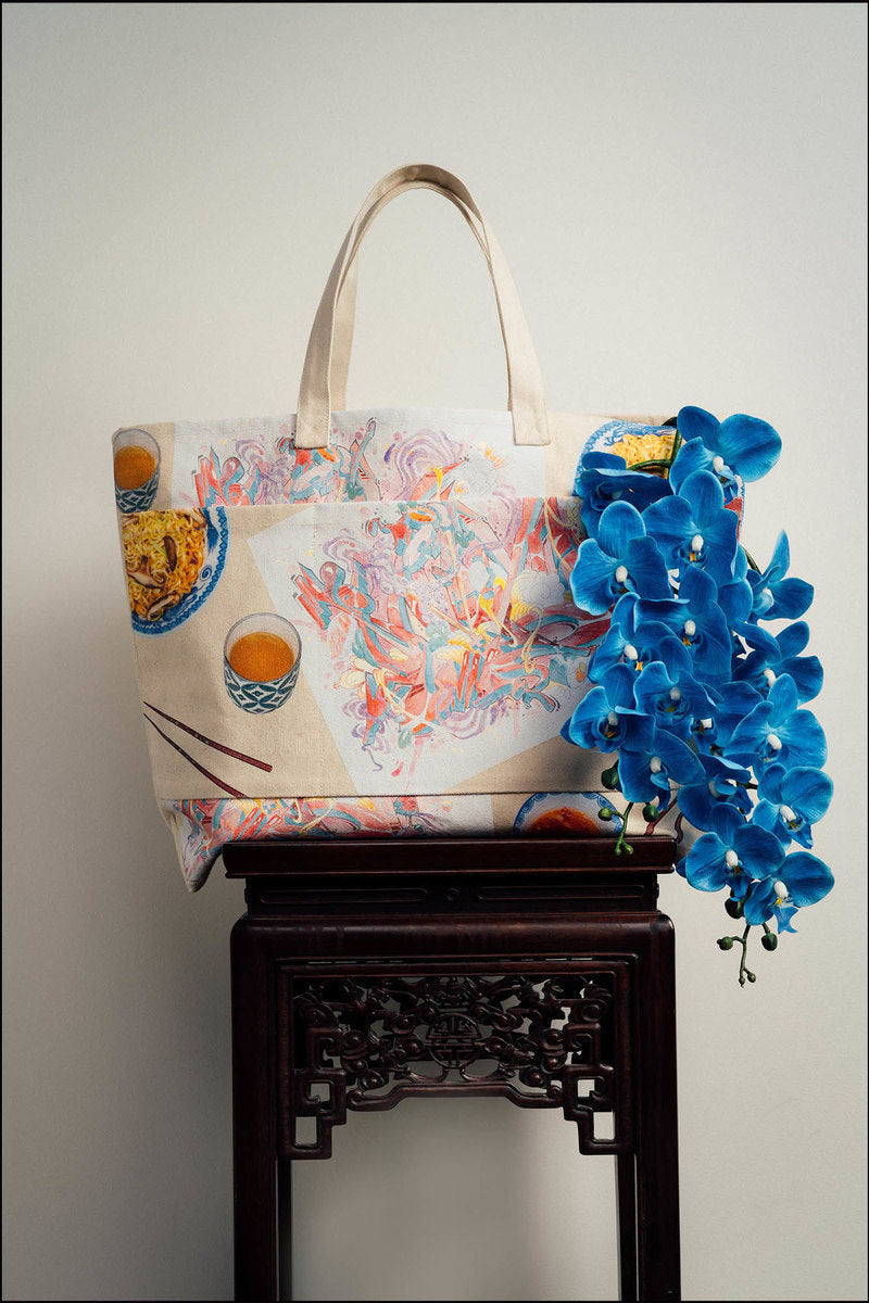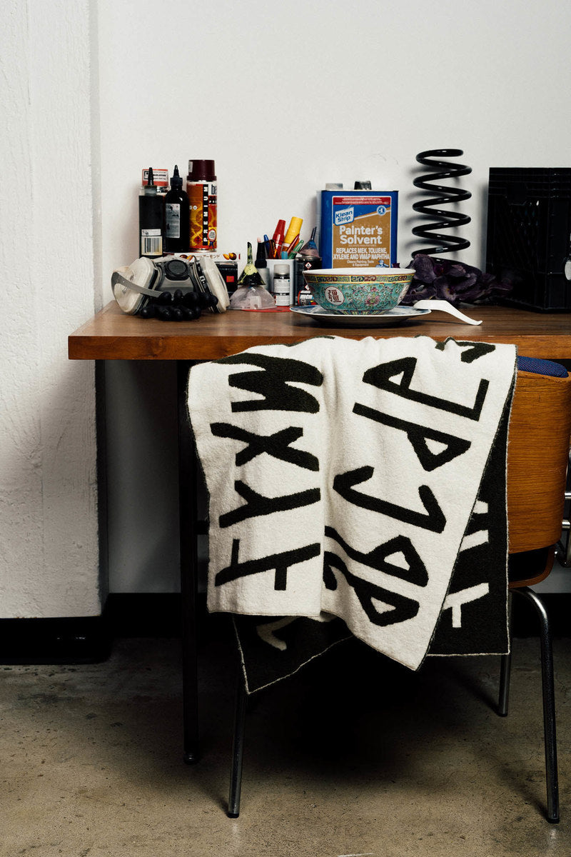 Two separate fonts were custom designed for the collection: one inspired by the striking Brazilian style of "pichação", which bears more resemblance to Sumerian cuneiform than traditional wall tags, the other influenced by designer Calvin Nguyen's own graffiti which has continued since he first started tagging in grade school. Styles like the Ghostee Top obscures artwork with a sheer mesh layer to mimic the temporal nature of "dishu" water calligraphy practiced by elders in China in a literal form of "street art" for public spaces. Goodfight's running motif of duality and the meeting of divergent identities continues with double collar details and laces. A very special highlight in the collection is a collaborative oversize tote with Parisian artist Lady K, featuring one of her iconic works.