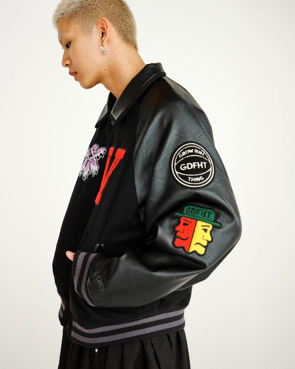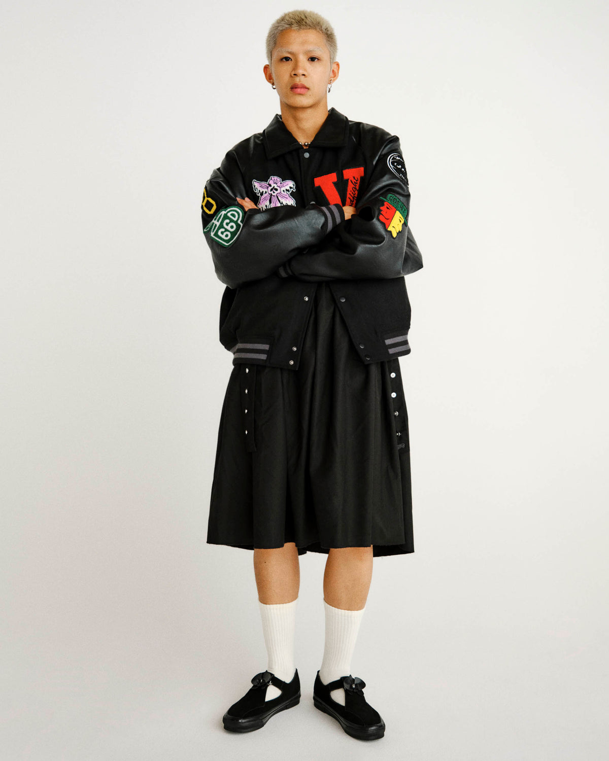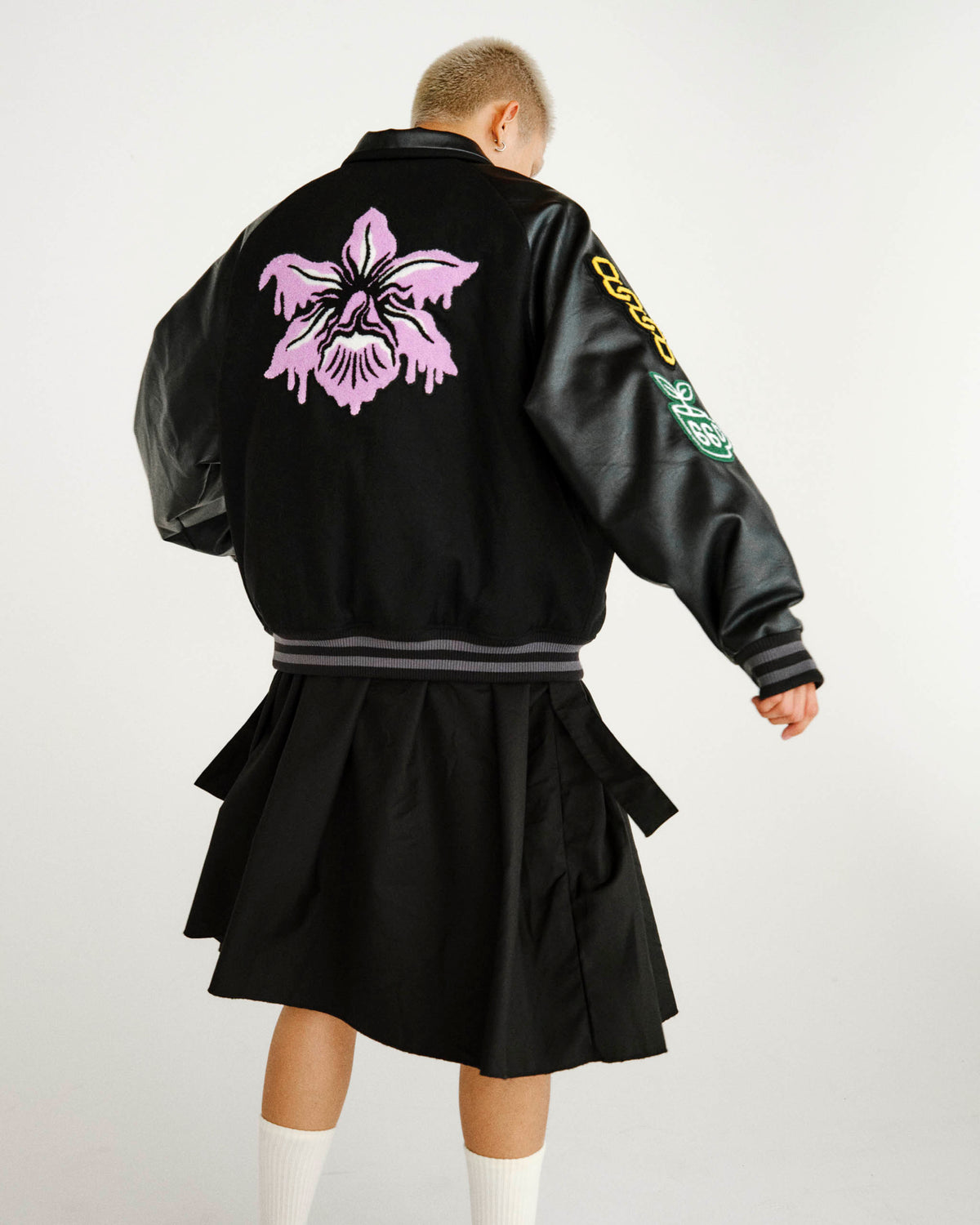 The collection was fronted by the OG Style 93 LX with removeable orchid blossom clips. The Mary Jane style shoe, available in sizing for all genders, is complemented by a four-piece apparel offering consisting of a letterman jacket with custom patches for DIY application, satin camp collar shirt and co-branded tee shirts.